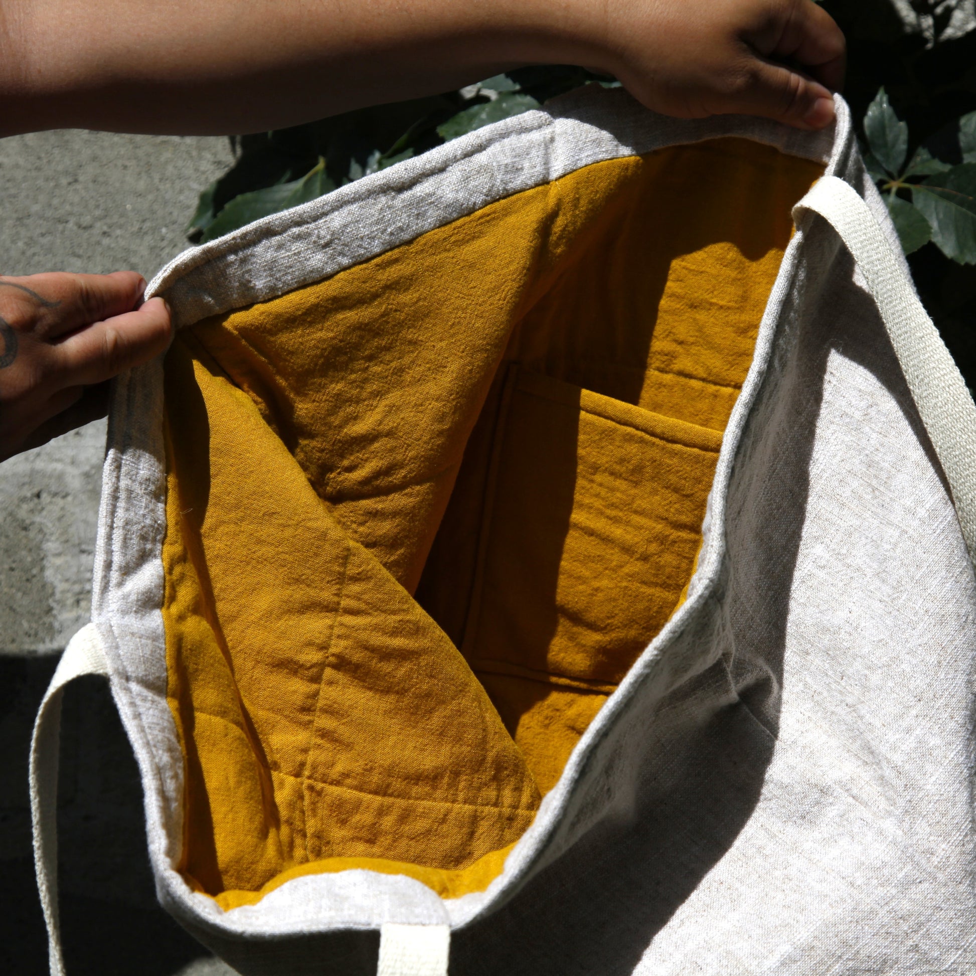 Soft and unstructured, the bag has a relaxed, slack feel—it doesn’t stand on its own, making it easy to fold, pack, or drape naturally at your side. Inside, the spacious interior is lined with 100% bright orange cotton—soft to the touch and vibrant for added personality.
